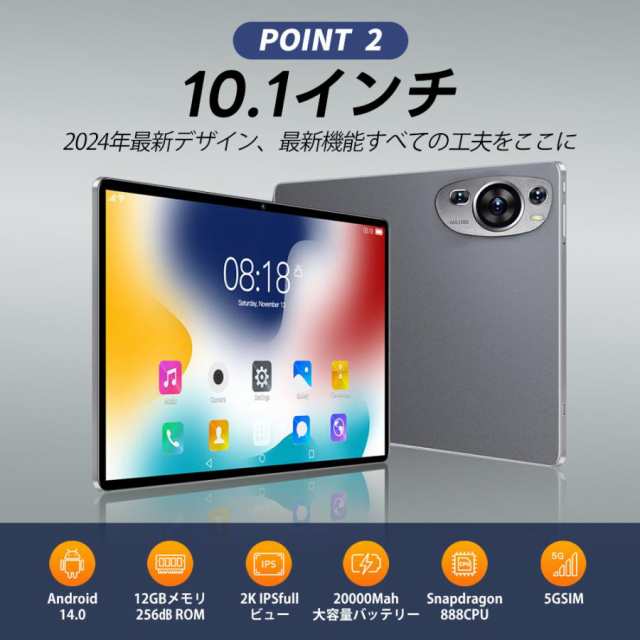 「即納」 新品 タブレット PC 本体 Android14 大画面 10.1インチ 8GB+256GB テレワーク 2560*1600 ネット授業 子供向け 動画視聴 Bluetooth GPS