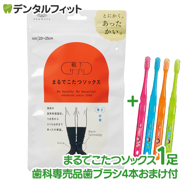 靴下 サプリ まるでこたつソックス レディース 23〜25cm 1足 ブラック Ci700 歯ブラシ ペコポコ柄 4本おまけ付 ソックス あったかグッズ ルームソックス Ciメディカル
