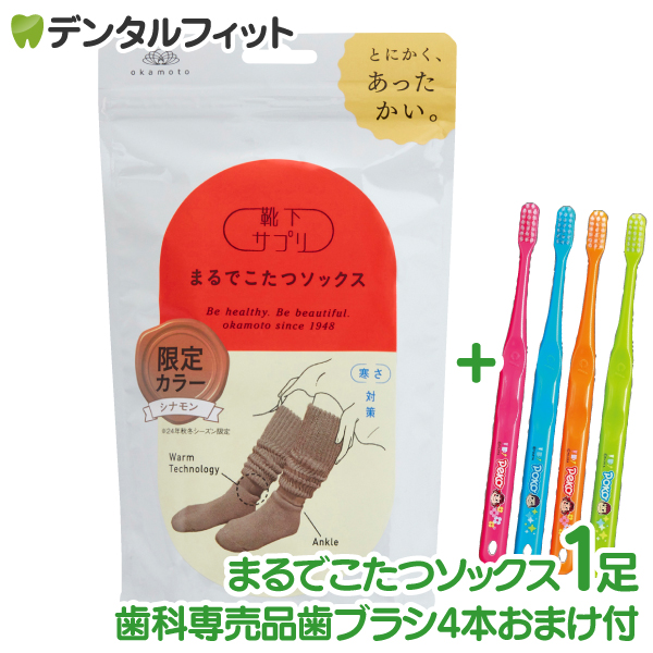 靴下 サプリ まるでこたつソックス レディース 23〜25cm 1足 ブラウン Ci700 歯ブラシ ペコポコ柄 4本おまけ付 ソックス あったかグッズ ルームソックス Ciメディカル