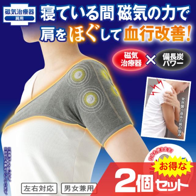 | 商品説明 | 寝ている間、磁気の力で肩をほぐして血行改善!生地は紀州備長炭繊維を使用。突然襲う肩の悩み。ハリやコリを寝ている間にじんわりと治療する肩サポーター。肩を囲むように4つの管理医療機器磁石を貼り付けているので、前後からじんわりと治療していきます。紀州備長炭繊維の生地は前後左右に伸びる編立なので肩にフィットするデザイン。日中も使えます。 |