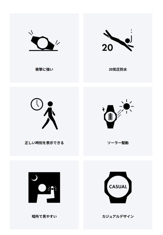 ・アラーム:時刻アラーム5本(カウントダウン機能付き)・時報