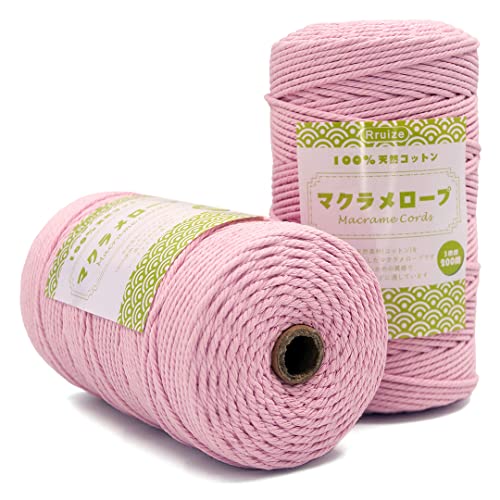 マクラメ ロープ 紐 糸 ナチュラルコットン 直径約3mm 編んで、100%天然染料使用 ピンク 200m*2