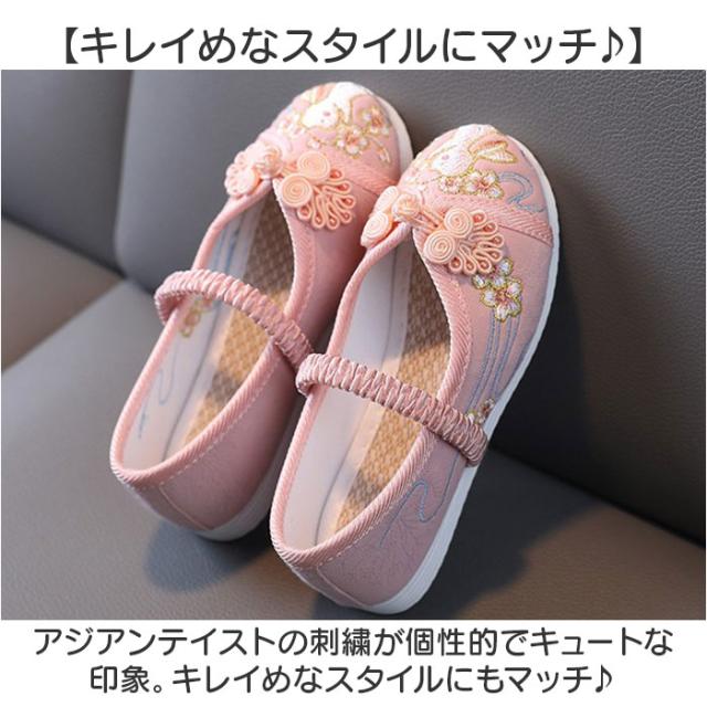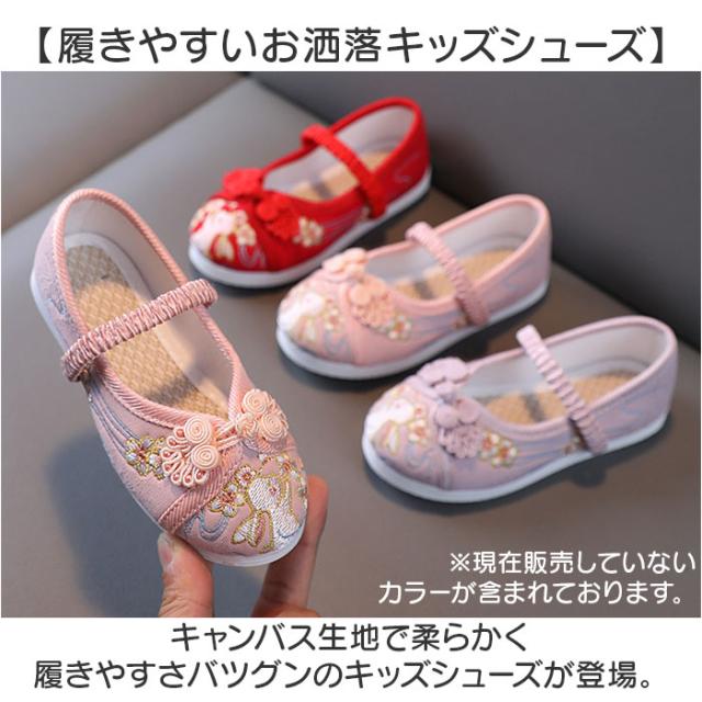 キッズシューズ 女の子 通販 靴 子供靴 くつ シューズ 七五三 バレーシューズ 刺繍入り フラットシューズ 子供 可愛い かわいい おしゃれ 歩きやすい 柔らかい 和柄の靴 草履