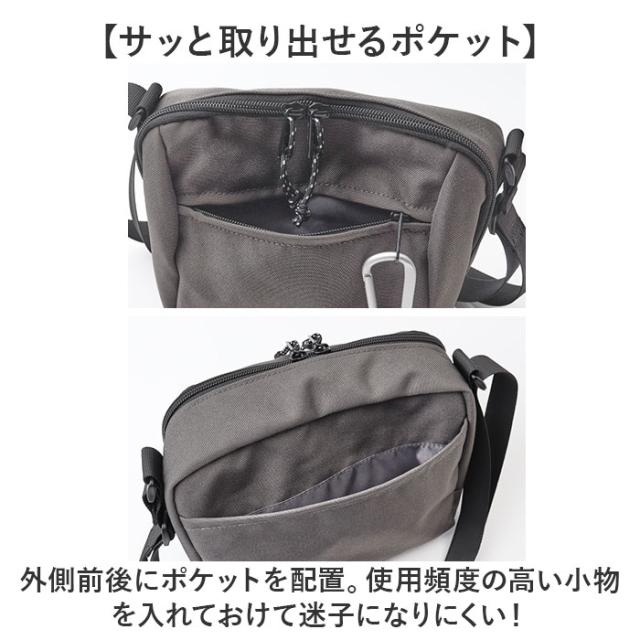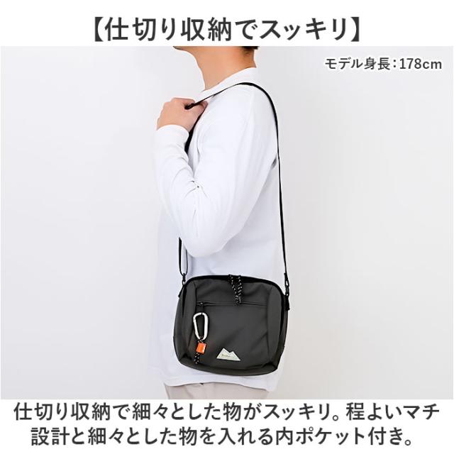| 商品説明 | 【仕切り収納でスッキリ】 ・仕切り収納で細々とした物がスッキリ。程よいマチ設計と細々とした物を入れる内ポケット付き。 【ユニセックスで使えるデザイン】 ・シンプルを極めたスタイリッシュデザイン!ユニセックスで使えるカラーラインナップ! 【コンパクトだけどたっぷり収納◎】 ・絶妙なサイズ感がポイント。お出かけに必要な荷物をまるっと収納して身軽にお出かけできる! 【A5サイズも長財布も】 ・内側はA5サイズのノートや長財布が、横向きにすっぽり入るサイズ感。 【安心のファスナー開口】 ・開口部はファスナー式。中身がこぼれ落ちることなく、プライバシーを確保。 【サッと取り出せるポケット】 ・外側前後にポケットを配置。使用頻度の高い小物を入れておけて迷子になりにくい! 【長時間の移動もラクラク】 ・身体に負担がかかりにくい軽量設計。両手が空くので、自転車移動やお子さまとのお出かけにも! 【軽くて丈夫なのでガシガシ使える】 ・バッグの重さはカラビナ含んでもわずか約208gと軽量!デイリーからアクティブシーンにも活躍◎ 【ちょっとの雨なら大丈夫】 ・表面は汚れや水滴を弾く撥水加工済。お手入れもサッとでOK。(※完全防水ではありません。) 【ポケット仕様】 ・フロント:ファスナーポケット×1 ・メイン収納:オープンポケット(メッシュ)×2 ・背面:オープンポケット×1 |