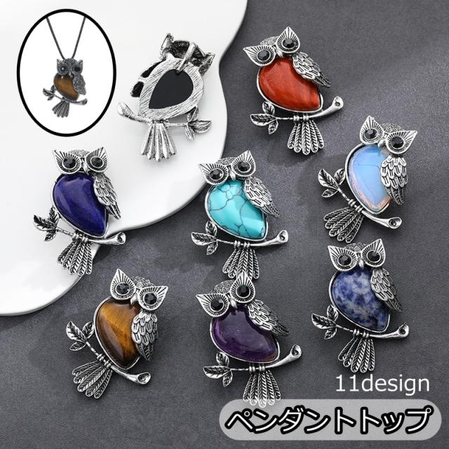 ペンダントトップ ペンダントヘッド チャーム ネックレス ペンダント 天然石 パワーストーン 梟 不苦労 縁起物 ラッキーアイテ