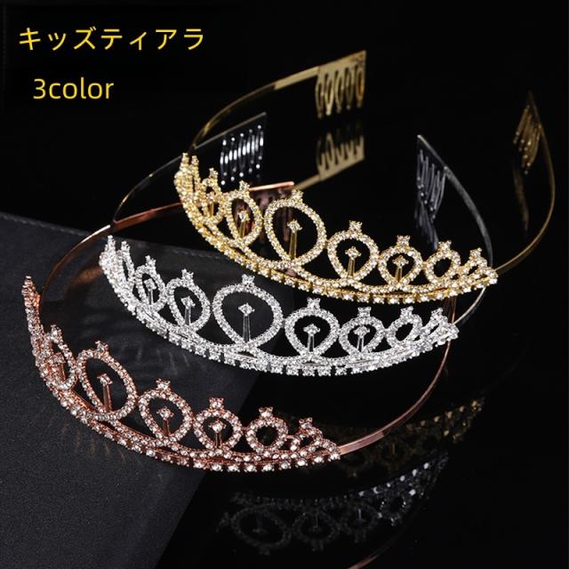 ティアラ キッズ 子供用 女の子 王冠 キラキラ ハート ラインストーン シルバーカラー ゴールドカラー ヘアアクセサリー 飾り