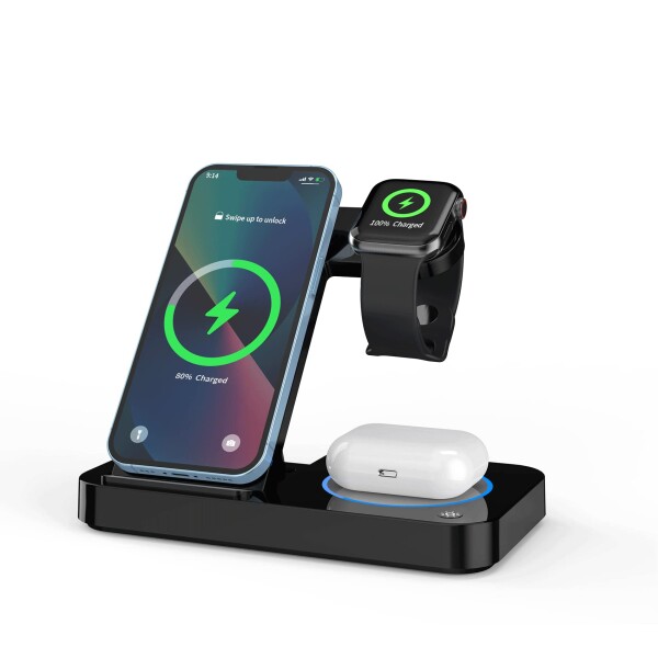 【3in1多機能デザイン】Android、Airpods、Apple Watch またiPhoneを三つ同時に充電できるワイヤレス充電器を初登場しました。スマホ充電スタンドは三つの角度を調整することができ、平置き・立てかけ自由自在!置くだけで、充電しながらチャットしたり、音楽を聞きたり、映画を見たりすることも楽しみます。毎日使うものを手軽で快適にご使用していただけます!