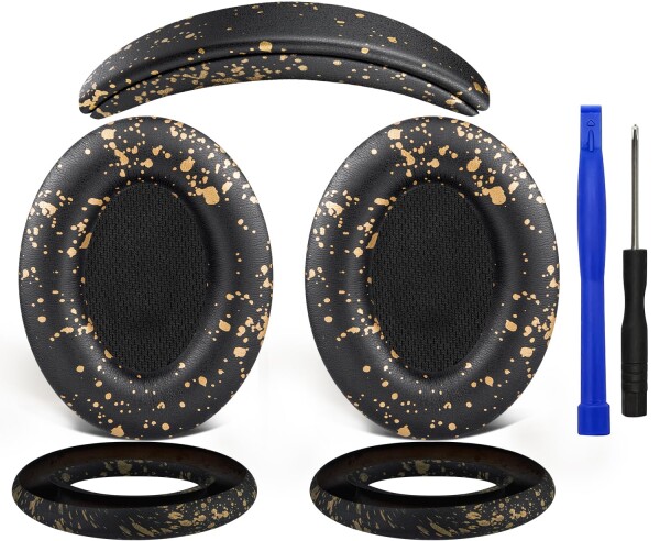 SOULWIT イヤーパッド + ヘッドバンド + イヤーパッドカバー Bose QuietComfort 15 (QC15)/QuietComfort 2 (QC 2) 用 ヘッドセット 交換 キット ヘッドホン 替え パッド 劣化防止 クッション (ブラックゴー