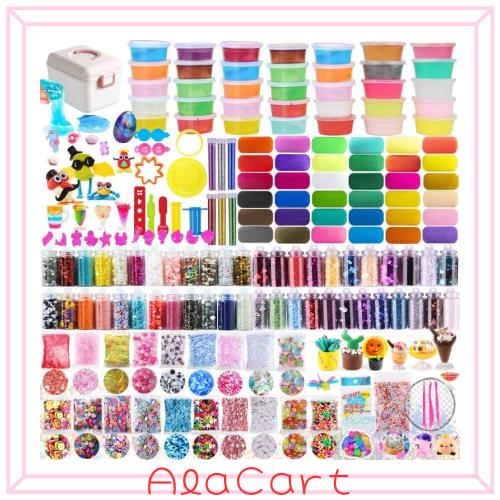 【プレゼントとして最適】 粘土も大量なので、1人じゃなく数人で同時に遊べるぐらいは量があるので。豊富な色のスライムと、沢山のラメ等の付属品でボリューム感満点。たくさんのことができるパーツが入っています。友達や家族と制限時間を決めて、何かを作って、見せ合うのもとても楽しかったです。もらって喜ばない子はきっといないはず!