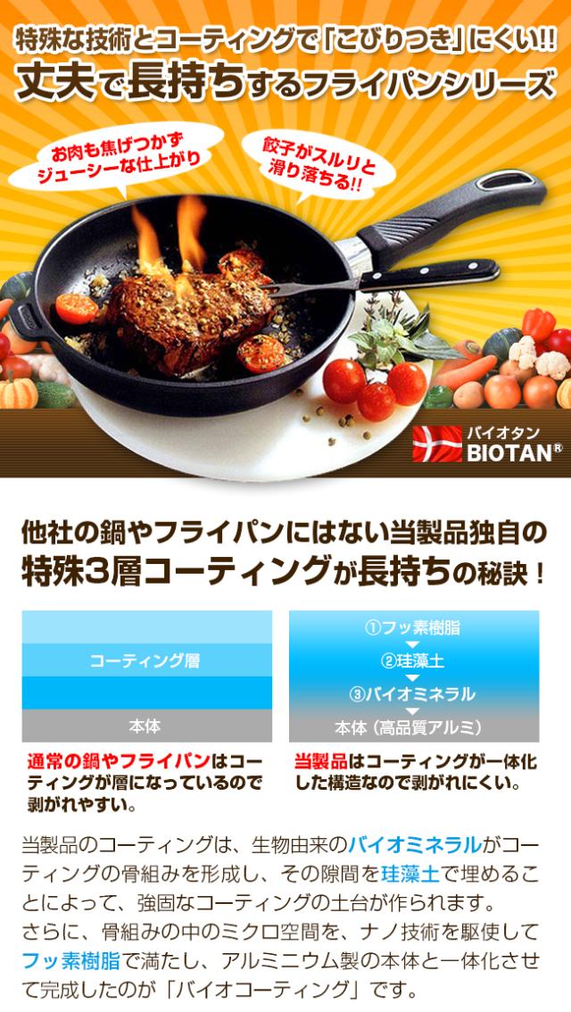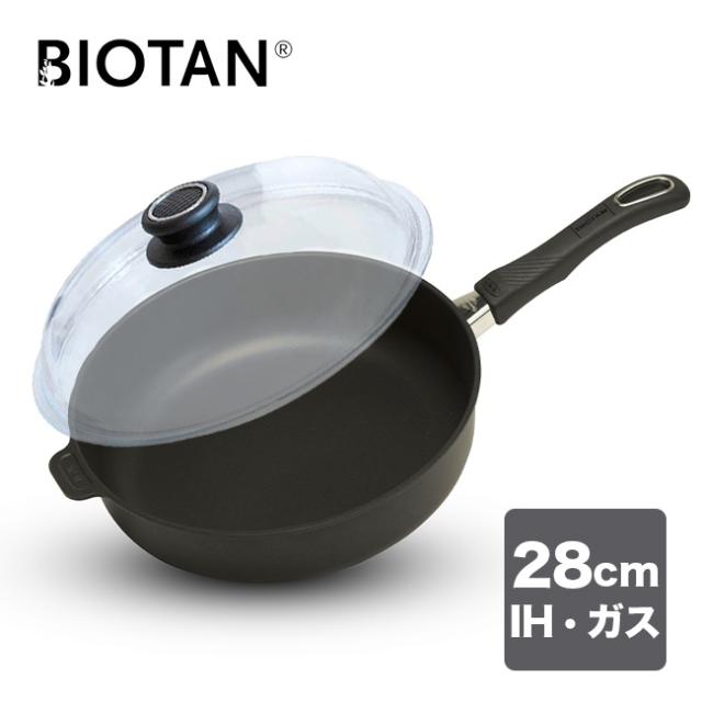 バイオタンのフライパン&ガラス蓋セット。フライパンの熱源はIHとガスの両方に対応。