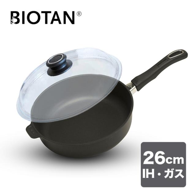 バイオタン 深型フライパン 20cm+ドーム型耐熱ガラス蓋(フライパン 蓋付き マルチパン ふた IH対応 ガス対応 ガス火 深型 フタ付き ガラス蓋 セット コーティング フライパンセット 持ち手付き シンプル)【F】
