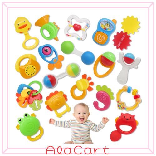 【いくつかの音と色】このラトル21個セットは、赤ちゃんの聴覚の発達を助ける様々な音を提供します。ガラガラの音と動きを関連付けることを学ぶと、赤ちゃんは音のする方に顔を向けるようになります。また、赤ちゃんがおもちゃを振ると楽しい音が鳴り、手と目の連動や視覚的な追従を促します。さらに、それぞれのガラガラは、視覚の発達を促すコントラストの高い明るい色合いが特徴です。