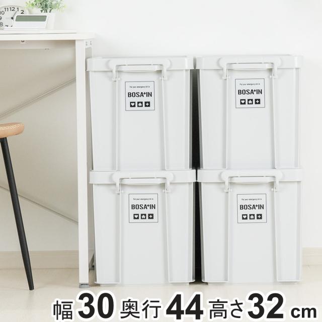 収納ボックス 積み重ねボックス 44 BOSA+IN 幅30×奥行44×高さ32cm ( 収納ケース 収納 フタ付き ボックス ケース 収納コンテナ 大容量 スタッキング バックル付き 頑丈箱 防災グッズ 防災 ストック コンテナボックス ロック付き )