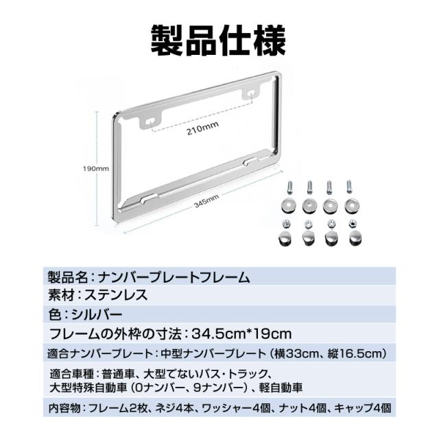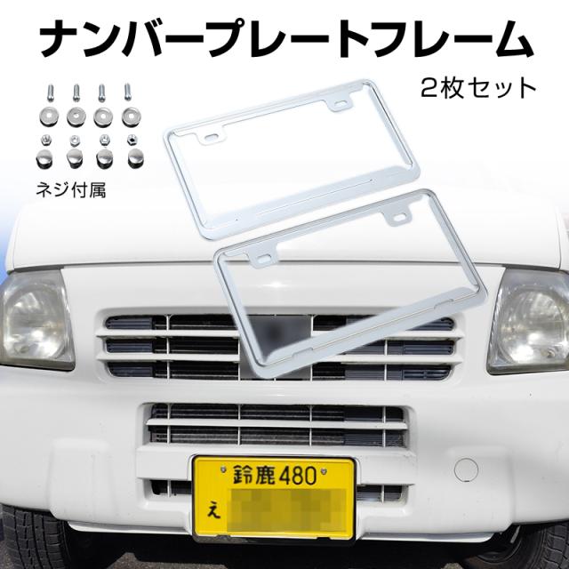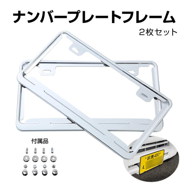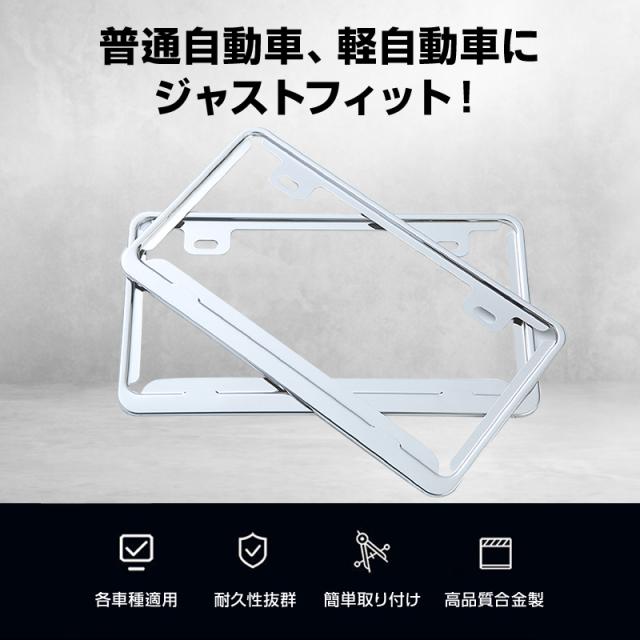 ナンバープレートフレーム 2枚セット 自動車用ナンバーフレーム ネジ付き 普通車 軽自動車 メタリック ナンバーフレーム シルバー ステンレス製 スタイリッシュ