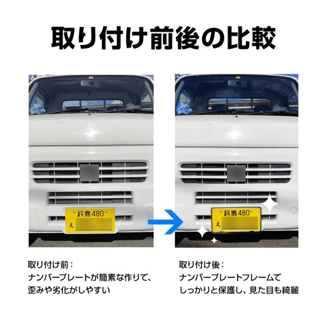 穴開け不要でフロントとリアの両方に取り付けられる、お得なフレーム2枚セットです。
