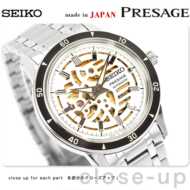 正規品 7年保証キャンペーン 送料無料 セイコー プレザージュ オープンハート 日本製 メンズ 腕時計 SARY255 SEIKO PRESAGE Style60’s アナログ シルバー ゴールド ◆機械式の愉しさをダイレクトに伝える、Style60’sシリーズ初のスケルトンダイヤルモデルが登場。テーマは「Elegant yet Rugged」(エレガント イエット ラギッド)。ダイヤルの力強い略字やベゼル表示板といった、Style60’s本来の無骨な要素は残しつつも、エレガントさを感じられる印象にアレンジ。機械式時計ならではのムーブメントの機能美と、スケルトンダイヤルの装飾美を組み合わせたレイアウトが魅力となっております。ダイヤル略字下外周部の仕上げは、クラウン クロノグラフのディテールを活かし、縦筋目の仕上げを施しております。右側は、ヴィンテージバイクの空冷エンジンをモチーフにした直線的なラインが特徴となっております。 発売日:2025年1月発売 機械式腕時計