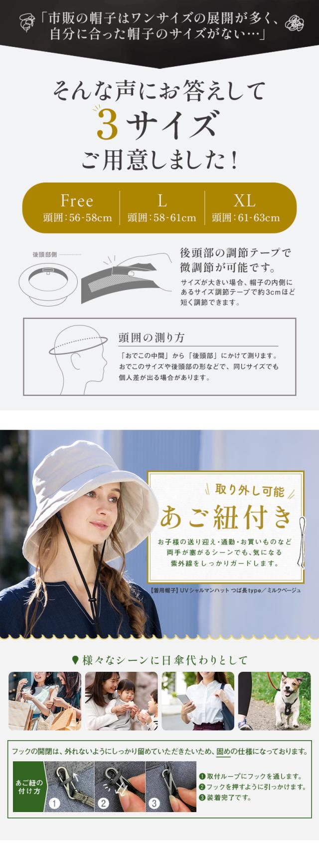 | フリー | 約56-58cm | 約9.5cm | ノーマル約10.5cm/つば長約12.5cm |
