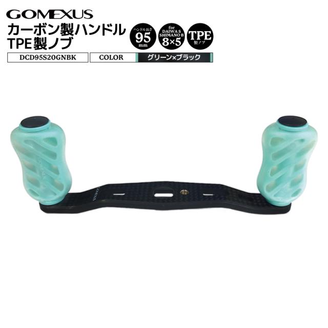 ゴメクサス カーボン製ハンドル グリーン×ブラック DCD95S20GNBK 8x5mm 95mm TPE製ノブ 20mm リールカスタムパーツ GOMEXUS 釣り具