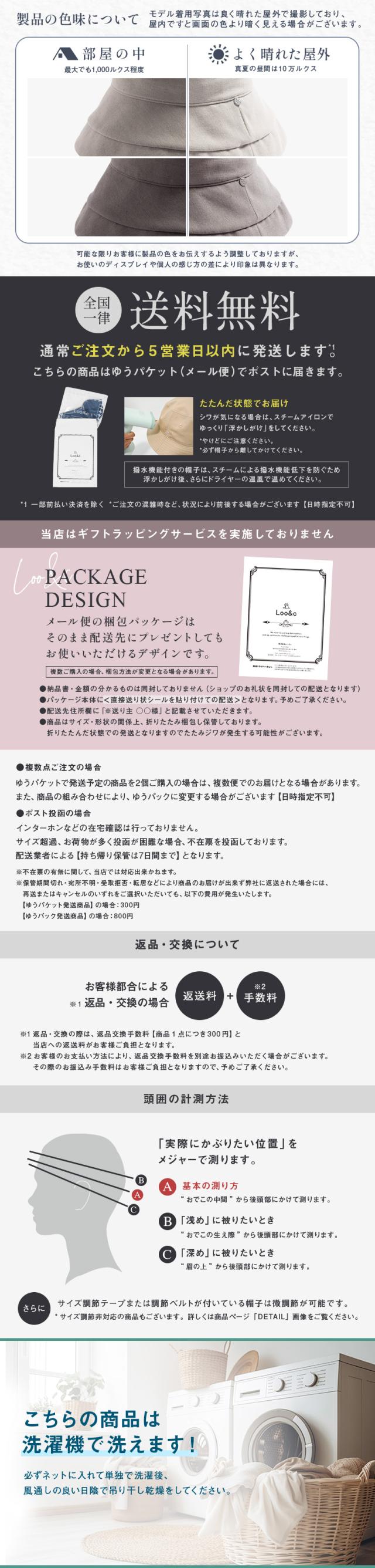 | ・帽子は平置きのサイズを記載しています。 ・サイズは5ミリ前後の誤差が生じる場合があります。計測サイズは目安としてお考えください。 ・お取り扱いの前に品質ネームタグの記載をご確認ください。 ・ご覧頂くモニターの発色具合によって実物と色が異なって見える場合があります。 ・商品単体の画像が実際の商品と色合いが近いものとなっておりますので、ご参照ください。 ・同商品でも、染色過程で色味が多少変わる場合があります。 |