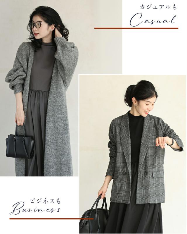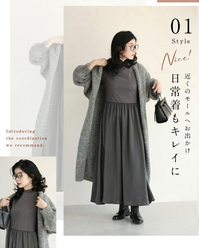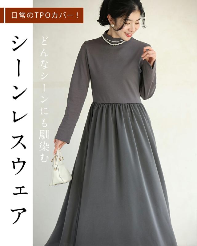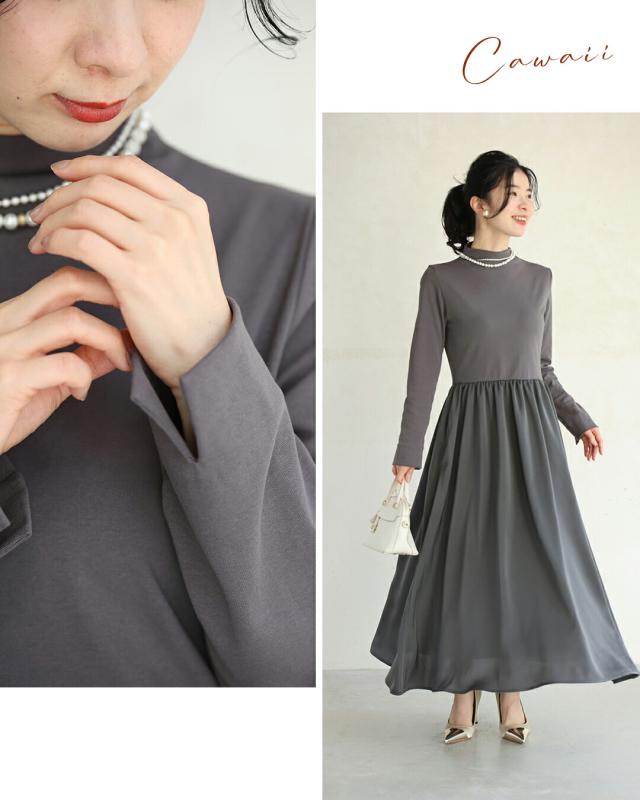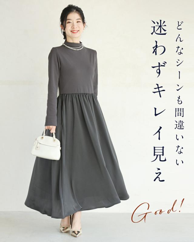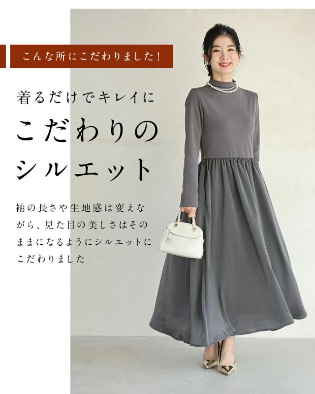 ky00031 新作 新着 再入荷 CAWAII FRENCHPAVE フレンチパヴェ エレガント ベーシック カジュアル 可愛い かわいい カワイイ おしゃれ オシャレ お洒落 個性 個性的 定番 ベーシック 大人かわいい 大人可愛い 上品 女性らしい デザイン スタンダード ナチュラル きれいめ キレイめ シンプル フェミニン レディース レディースファッション 大人 ママ ミセス 30代 40代 50代 60代 長袖バージョン 考えなくていい!1軍ワンピ Sサイズ Mサイズ Lサイズ 2Lサイズ 小さめ 小さめサイズ小さい 小さいサイズ 低身長 痩せ ほっそり 小柄 細身 標準サイズ サイズ展開 グレー ブラック 秋 冬 秋服 秋物 冬服 冬物 無地 ワンカラー ワントーン 普段着 日常使い おでかけ オフィス ビジネス 袖スリット 立ち襟 ヘビロテ