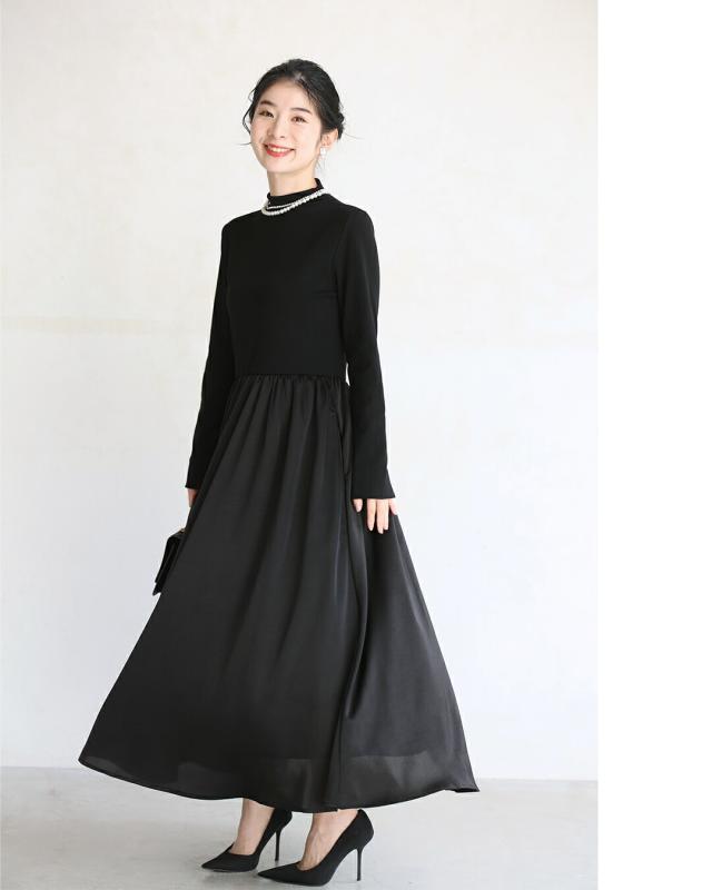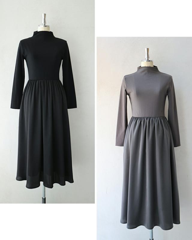 再入荷12月4日 (予約 12/25〜1/10前後の出荷予定) 長袖バージョン 考えなくていい!一軍ワンピ cawaii ky00031 S~M/L~2L対応 秋 冬 無地 日常使い オフィス 立ち襟 ヘビロテ サイズ展開 グレー ブラック レディース ファッション 大人 ママ ミセス 30代 40代 50代