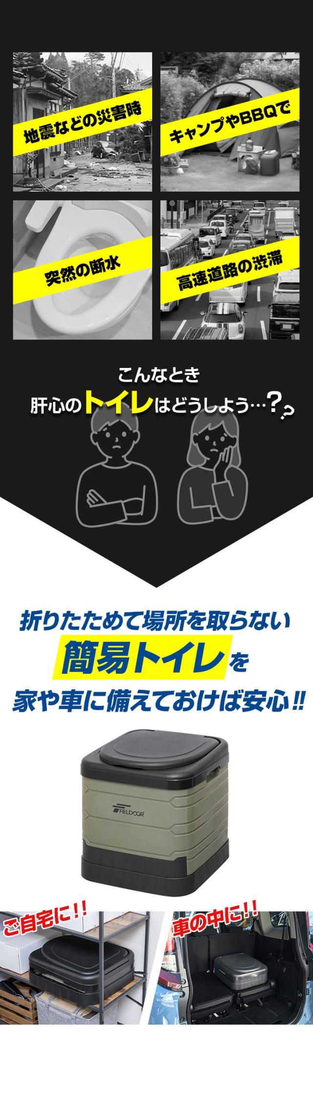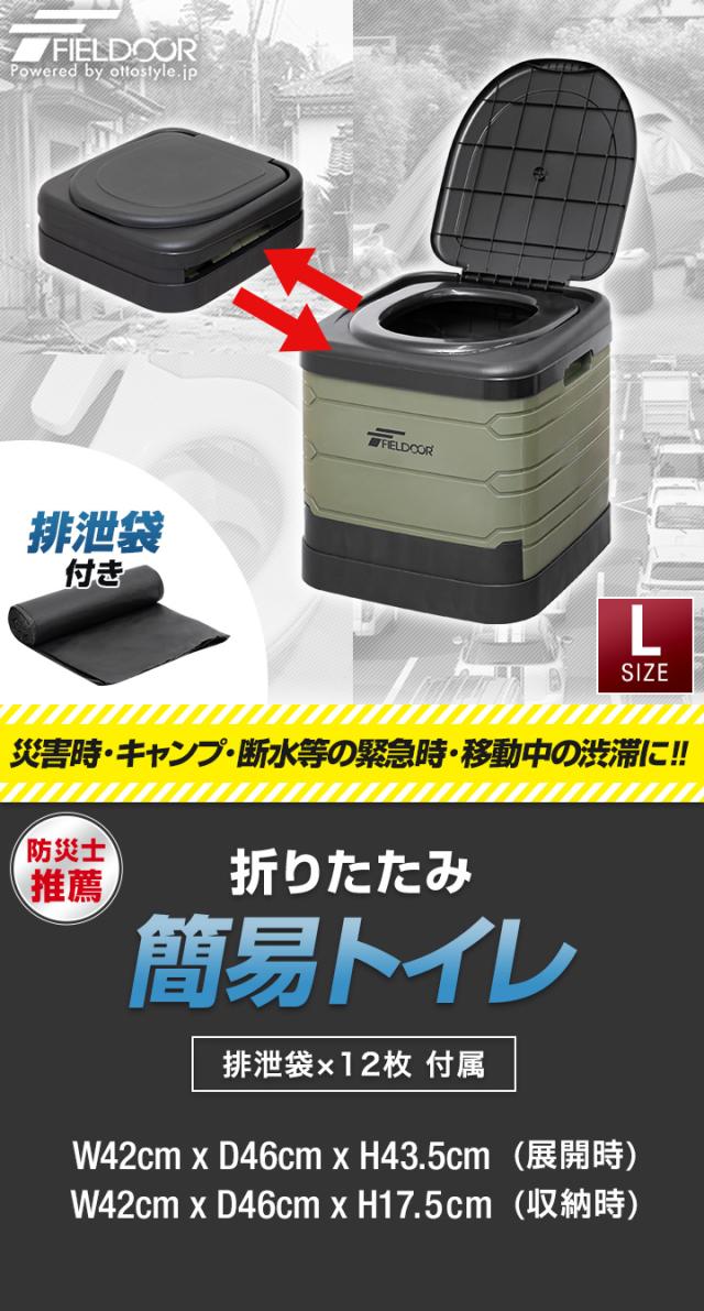 FIELDOOR 簡易トイレ 災害用 非常用 トイレ Lサイズ 大きい 折りたたみ ポータブルトイレ 排泄袋つき 携帯トイレ 防災 災害用トイレ 防災グッズ 防災用品 災害対策 停電 断水 防災士監修 介護 アウトドア 凝固剤付きセットも 1年保証 送料無料