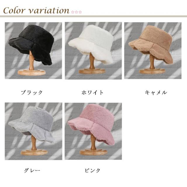 深め フラワーエッジ ボア バケットハット 冬 もこもこ ファー 花形 大きいサイズ おしゃれ バケットハット ふわふわ uvカット ファーバケハ レディース 帽子 バケハ 黒 白 フェルト ハット エコファー 折りたたみ 無地