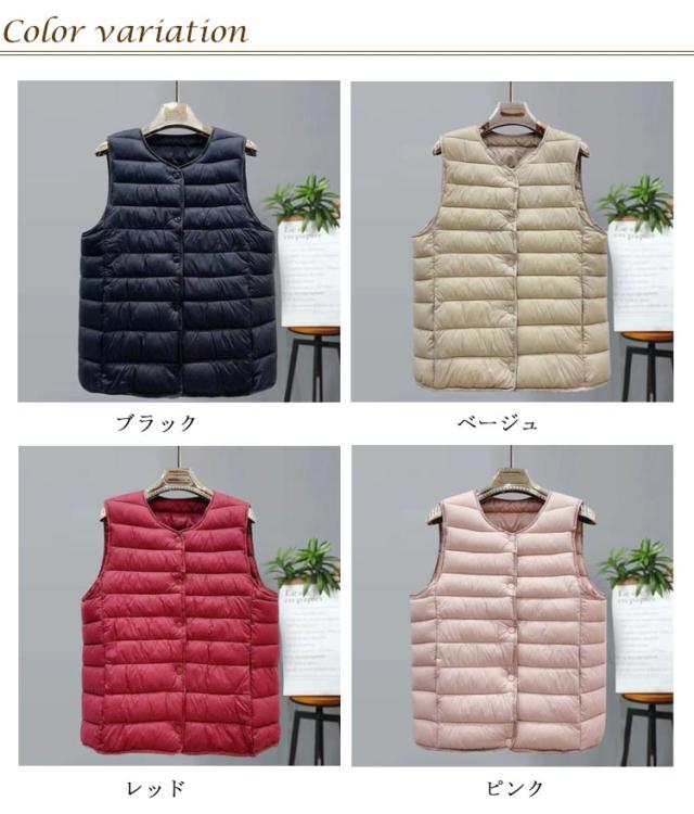 レディース インナー 薄手 秋 ナイロンベスト 春 中綿 ライト ベスト インナーベスト ベスト ノーカラー vネック ブラック 軽量 インナー ボタン ルームウェア レッド ベージュ ピンク 大きいサイズ 冬 防寒着 スポーツベスト スーツ 作業着 ビジネス