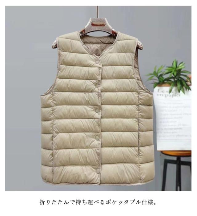 中綿ベスト インナー 軽量 ライト 秋 ノーカラー インナーベスト ナイロンベスト ベスト 冬 ベスト 中綿 vネック 春 防寒着 薄手 インナー ルームウェア ブラック ベージュ ピンク レッド 大きいサイズ ボタン スポーツベスト スーツ 作業着 ビジネス