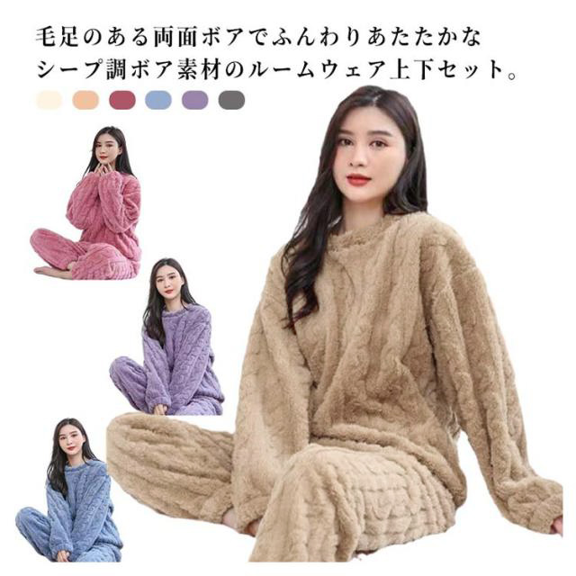 もこもこ 冬 冬用 パジャマ レディース ルームウェア 上下セット ふわふわ あったか パジャマ 部屋着 かわいい おしゃれ あったか 冷え対策 暖かい 厚手 防寒 パンツ シンプル 無地 ゆったり フランネル 長袖 リラックス プレゼント