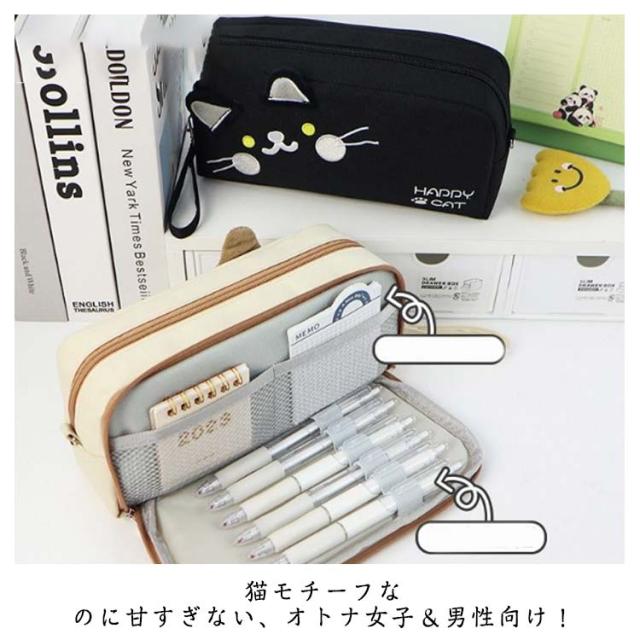 | ネコちゃんの顔が大きくデザインされたペンケース 猫モチーフなのに甘すぎない、オトナ女子&男性向け! 気分に合わせて選べる2種類のカラーバリエーションをご用意しました。 ペンケースとしてだけでなく、モバイルグッズや化粧品などの収納としても使えます。 筆記具や消しゴム、メモ用紙など色々なアクセサリーを収納することができる非常に便利な製品です。 | |