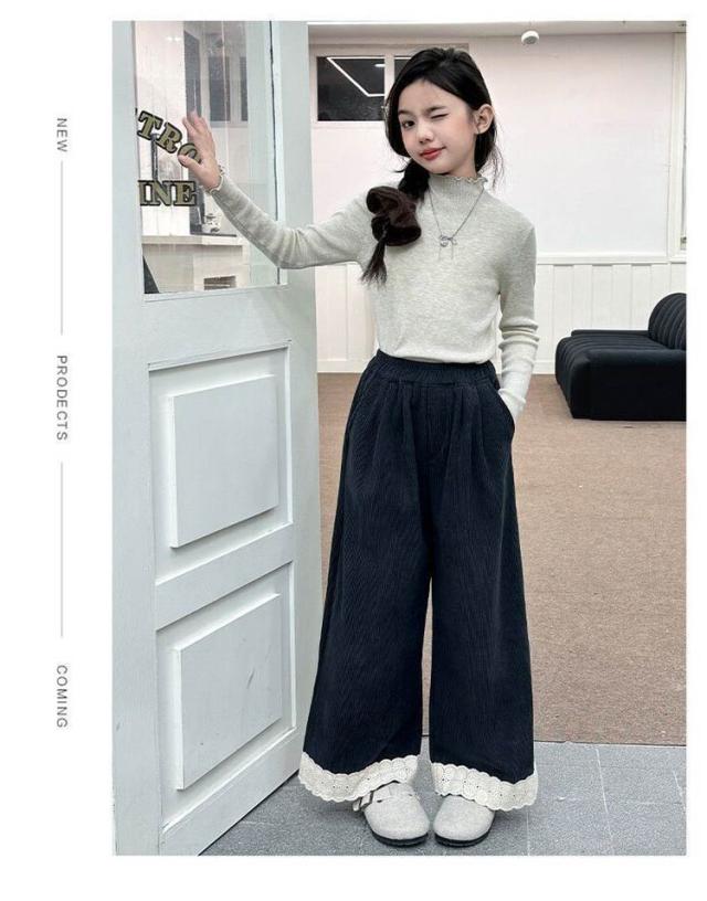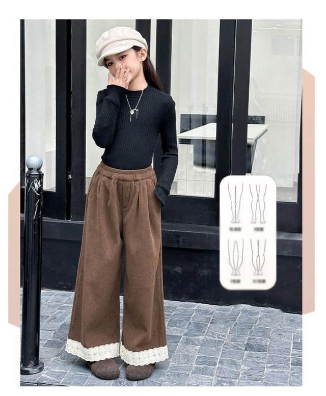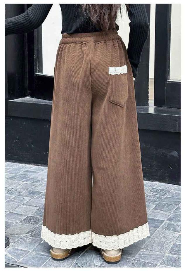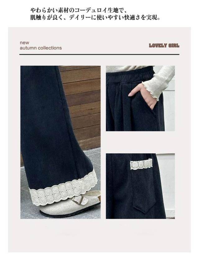 春 ジュニア ワイド 長ズボン キッズ 女の子 おしゃれ コーデュロイ ウエストゴム 幼稚園 ボトムス 無地 中学生 小学生 子供服 子供 服 無地 かっこいい かわいい ファッション 冬 秋 ガールズ 韓国子供服 120cm 130cm 140cm 150cm 160cm 170cm