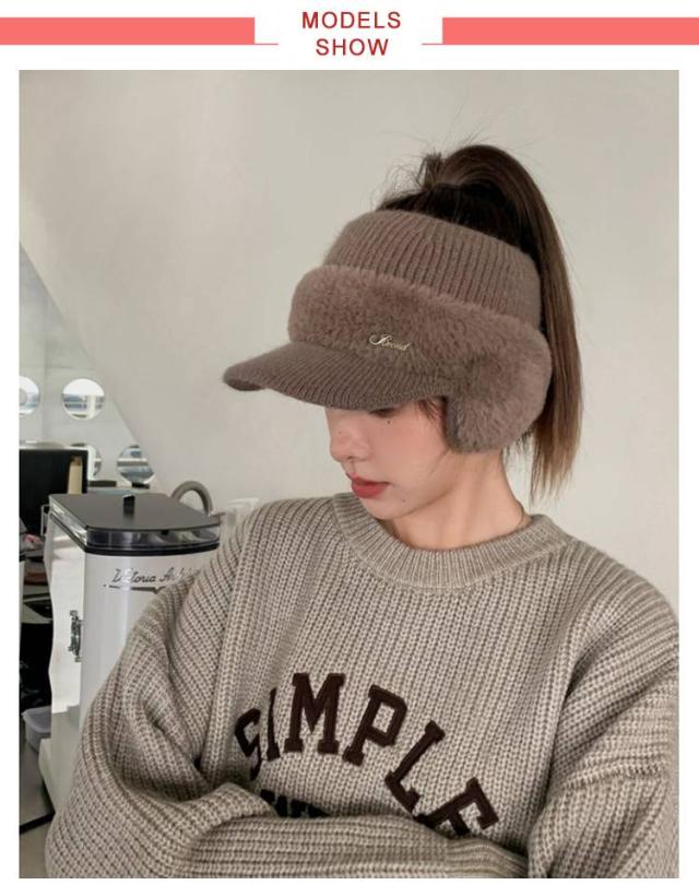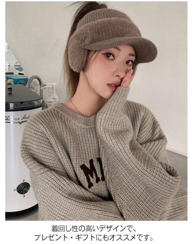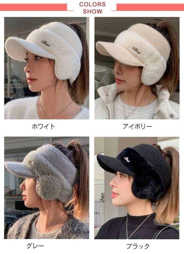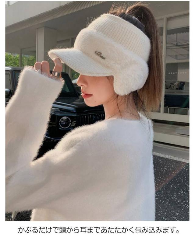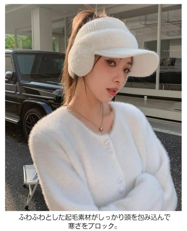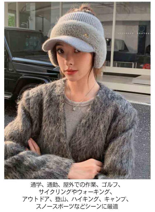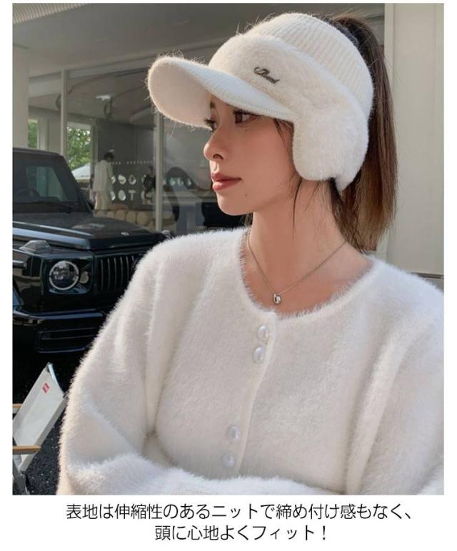 帽子 女性 ニット レディース 紫外線対策 おしゃれ 冬 耳当て付き もこもこ キャップ 耳当て付きニットサンバイザー 防寒 耳あて付き帽子 防風 ゴルフ スポーツ サイクリング 小顔効果 暖かい きれいめ かわいい ニット帽 母 ギフト プレゼント