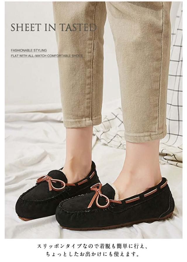 フラット ローファー 秋冬 ローファー シューズ 裏起毛 ぺたんこ モカシン 通勤 スリッポン ボア もこもこ 防寒 レディース あったか 保温 スエード パンプス 痛くない 歩きやすい ムートン風 カジュアル リボン付き かわいい お出かけ 室内 室外 婦人靴