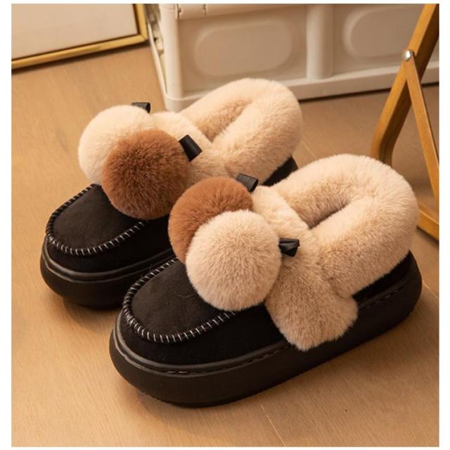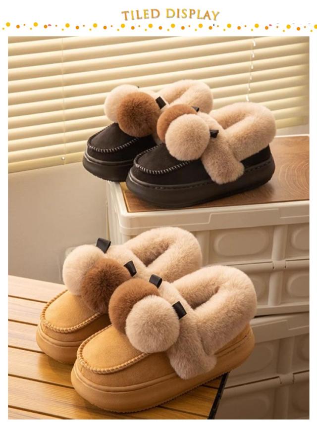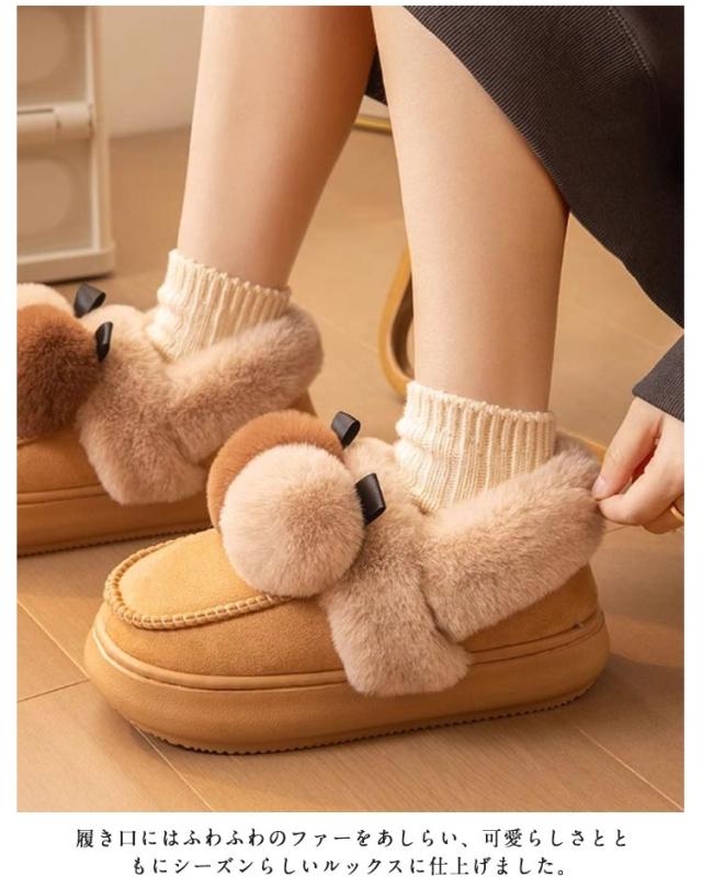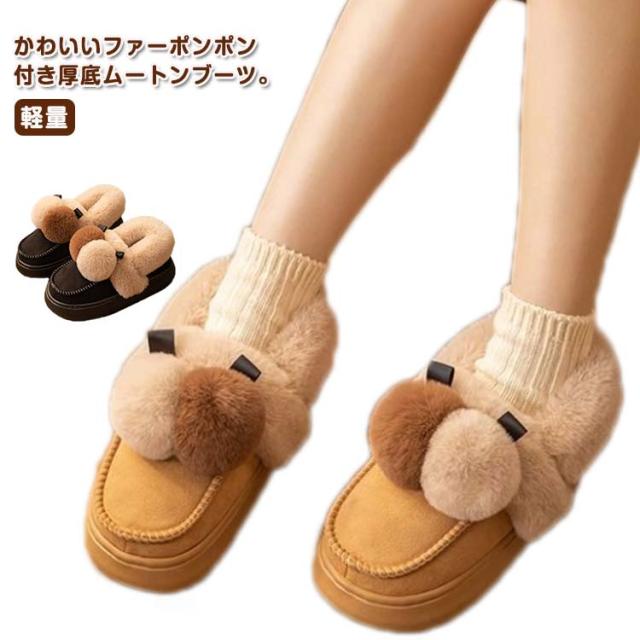 ポンポン付き 靴 裏起毛 秋冬 ふわふわ シューズ かわいい もこもこ ファー 裏起毛 軽量 防寒 保温 あったか スエード ショートブーツ ムートン風ブーツ ボリューム レディース 軽い 歩きやすい 通勤 カジュアル 厚底 お出かけ 室内 室外 婦人靴
