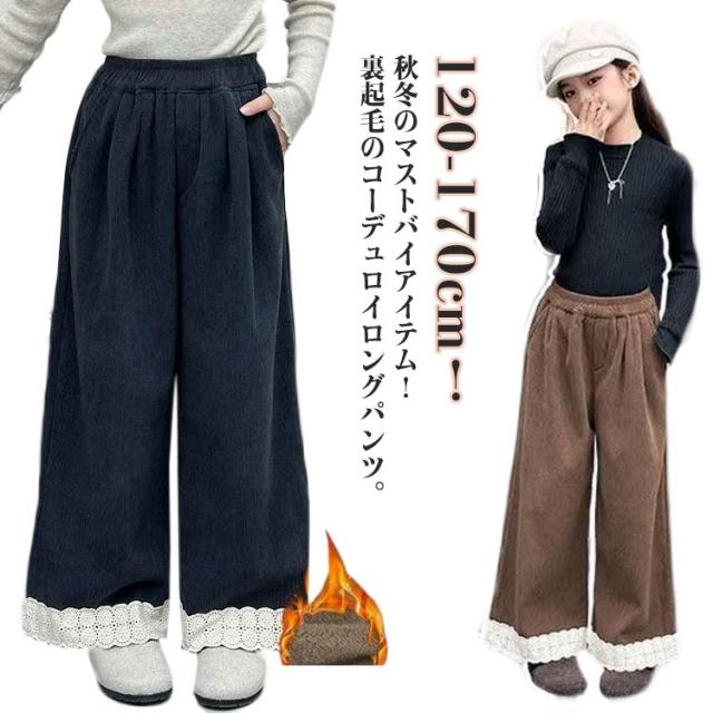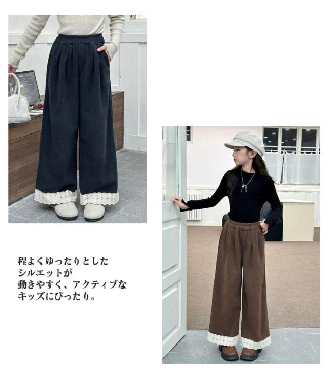 かっこいい 女の子 コーデュロイ 無地 キッズ かわいい ウエストゴム ワイド ボトムス ジュニア 長ズボン 小学生 中学生 子供服 ガールズ 無地 130cm おしゃれ 子供 服 幼稚園 春 秋 冬 韓国子供服 120cm ファッション 140cm 150cm 160cm 170cm