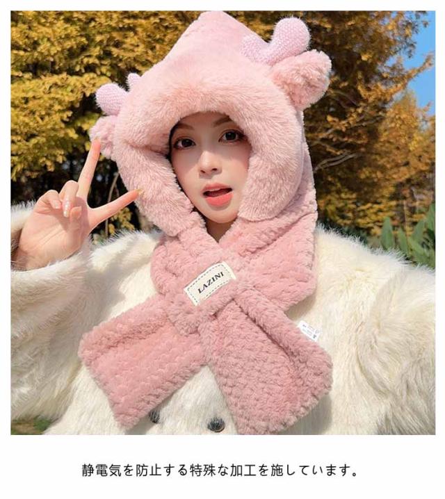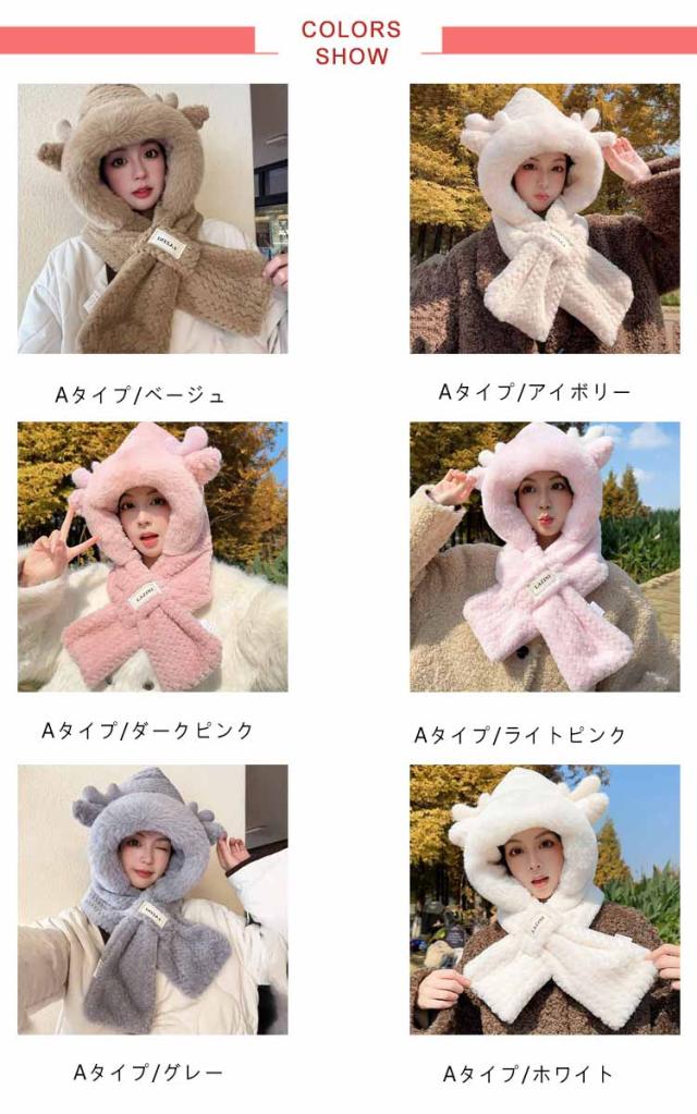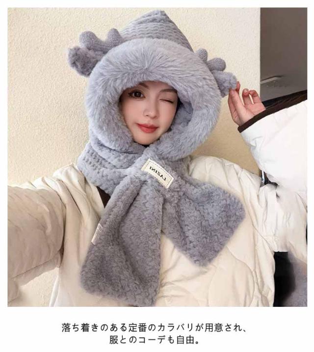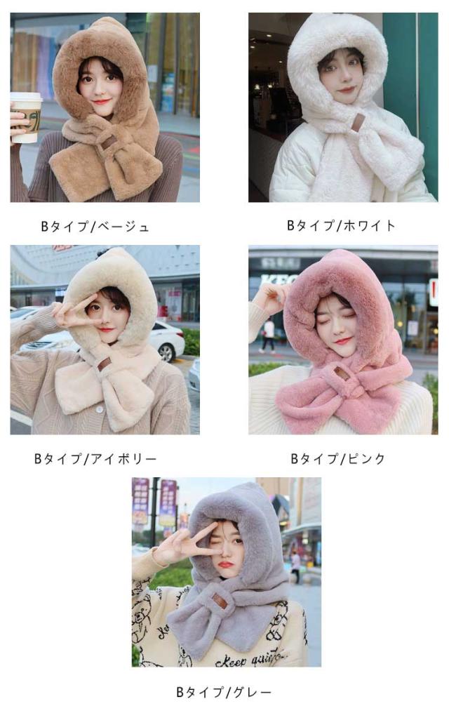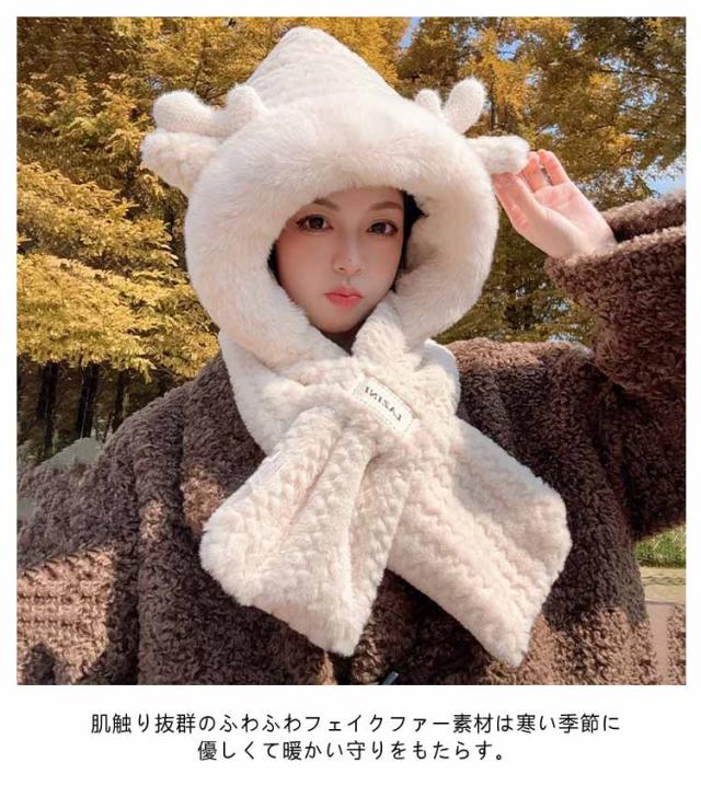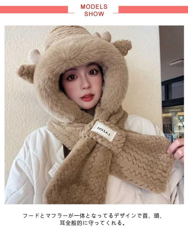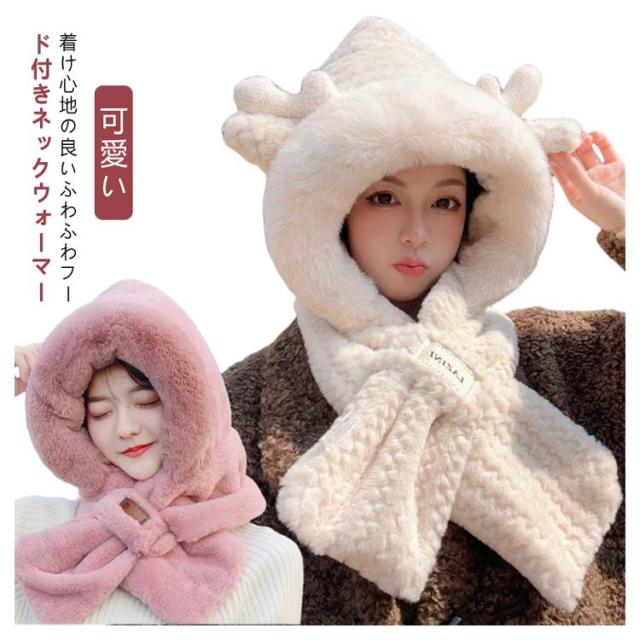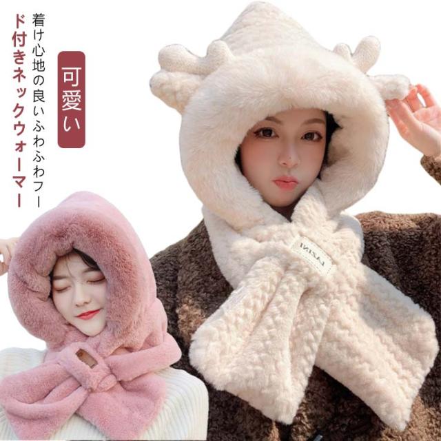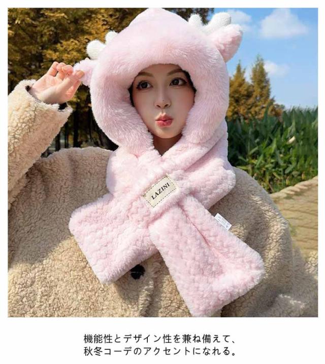 マフラー フード付き ネックウォーマー ファー帽子 レディース 耳当て フェイクファー ふわふわ もこもこ 帽子 スノーボード スキー スヌード 小顔効果 ボリューム感 通学 中学生 高校生 通勤 保温 暖かい ストール 防寒 送料無料