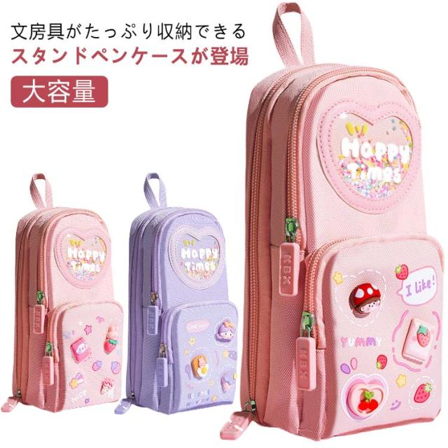 ペンケース 大容量 小学生 筆箱 縦型 ふでばこ 収納 自立 スタンド型 シンプル おしゃれ ファスナー 多機能 軽量 女の子 中学生 小物収納 可愛い かわいい ペン入れ ガールズ プレゼント ギフト 送料無料