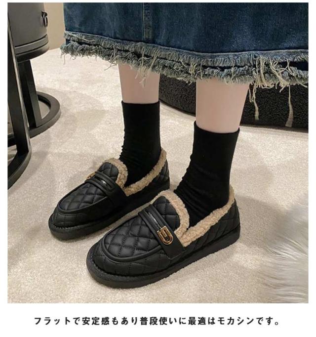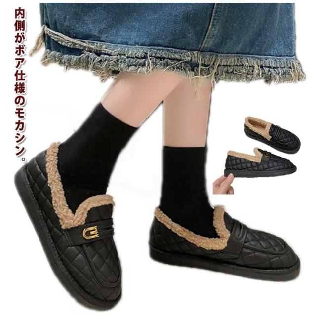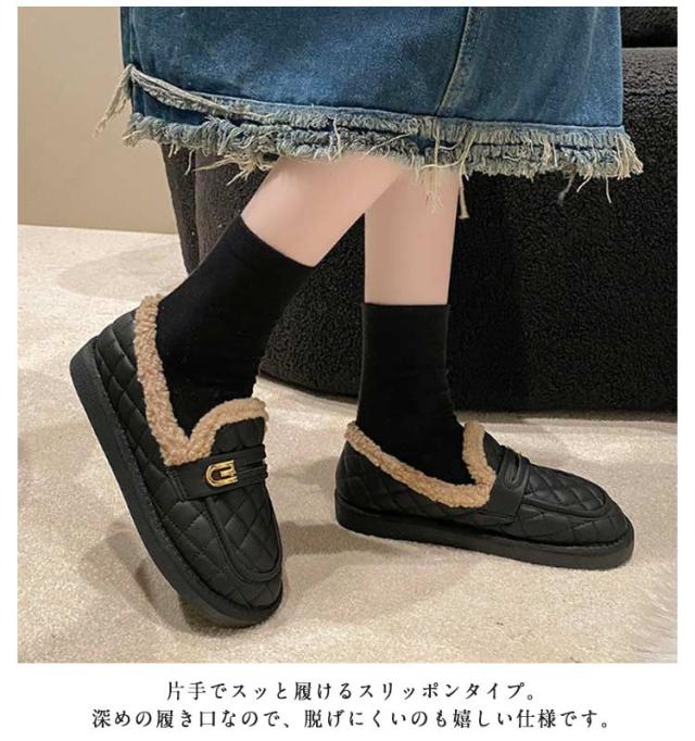 裏起毛 スリッポン 秋冬 あったか レディース 裏ボア ぺたんこ 靴 もこもこ キルティング ローファー フラット シューズ 撥水 合皮 モカシン 防寒 パンプス 保温 ボア 革 軽量 軽い 防滑 歩きやすい 痛くない 疲れない きれいめ おしゃれ