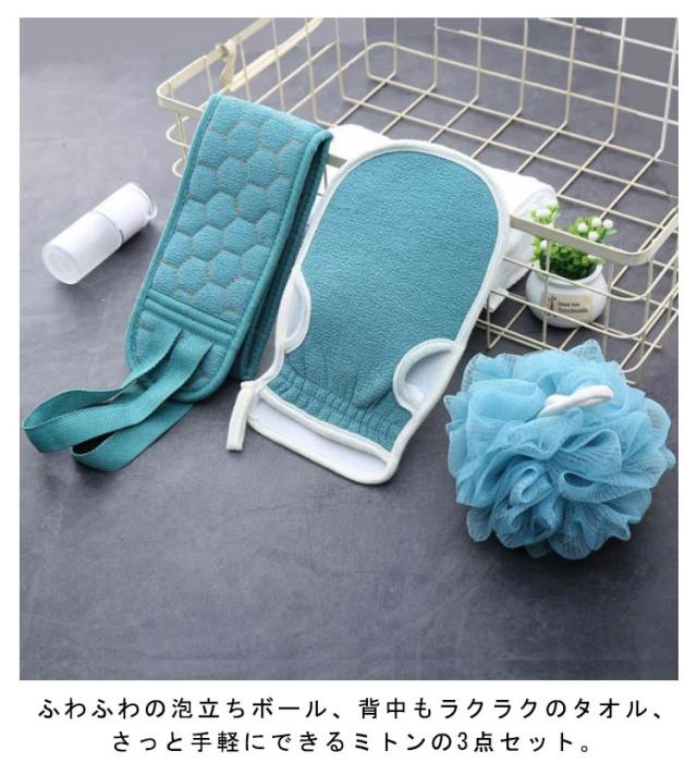 3点セット 垢すり バスグッズ あかすり グローブ タオル 泡立てネット グッズ スポンジ 美肌 お風呂 角質除去 アカスリ ミトン 背中 毛穴清潔 ボディケア 男女兼用 入浴用品 お風呂 大人 お風呂グッズ