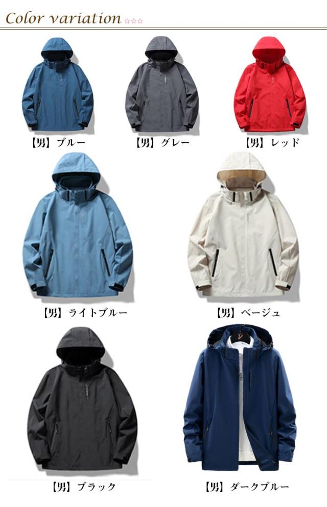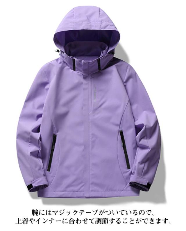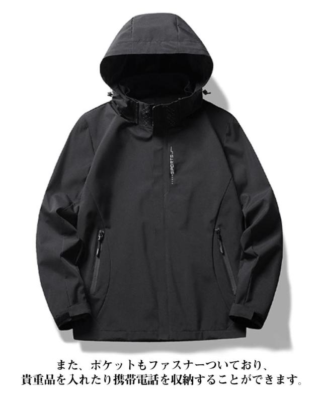 | さまざまなアウトドアシーンで活躍する多機能かつスタイリッシュなマウンテンパーカーが登場しました。撥水加工と防風素材を採用し、悪天候でも快適に過ごせるように作られています。 また、男女兼用で着用できるデザインは、カップルでお揃いで着ることもでき、一緒にアウトドアを楽しむのにぴったりです。 腕にはマジックテープがついているので、上着やインナーに合わせて調節することができます。また、ポケットもファスナーついており、貴重品を入れたり携帯電話を収納することができます。 | |
