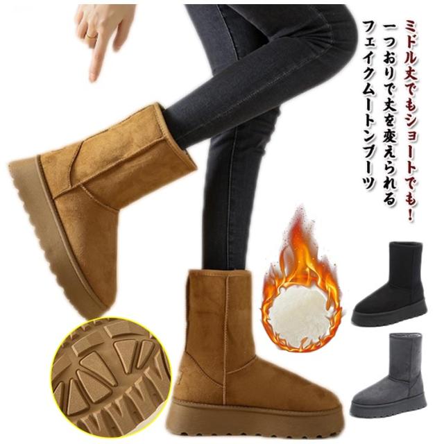 ムートンブーツ ブーツ レディース 裏起毛 ショートブーツ 靴 ショート 厚底 ムートンブーツ ミドルブーツ ムートン調 スノーブーツ 厚底ブーツ 秋冬 折り返し2Way シューズ あったか 軽量 防寒 防滑 保温 柔らか カジュアル 歩きやすい 無地 シンプル