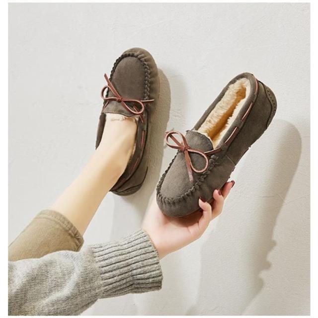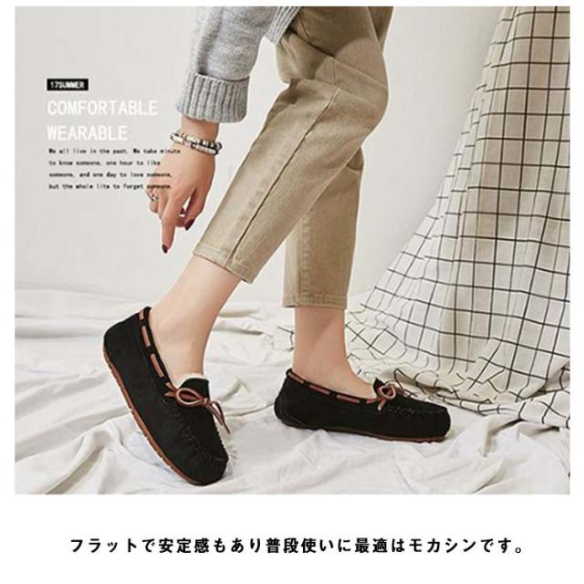 ローファー ぺたんこ レディース 裏起毛 フラット ムートン風 痛くない モカシン 秋冬 靴 もこもこ ボア 防寒 保温 あったか スエード ローファー パンプス 通勤 歩きやすい シューズ カジュアル リボン付き かわいい お出かけ 室内 室外 婦人靴