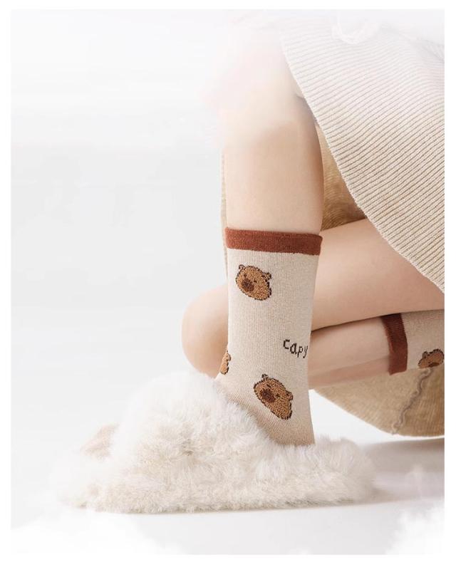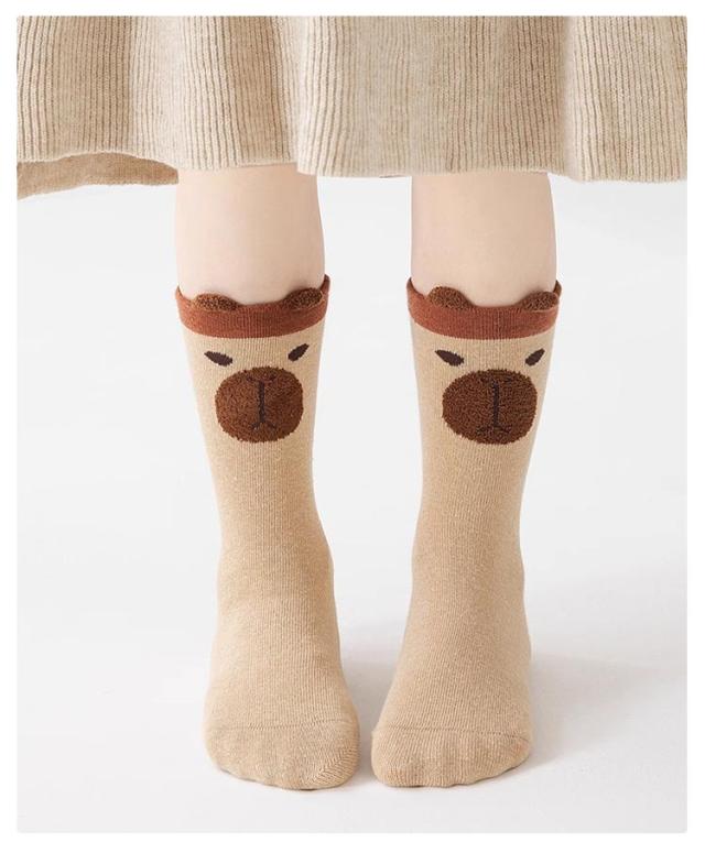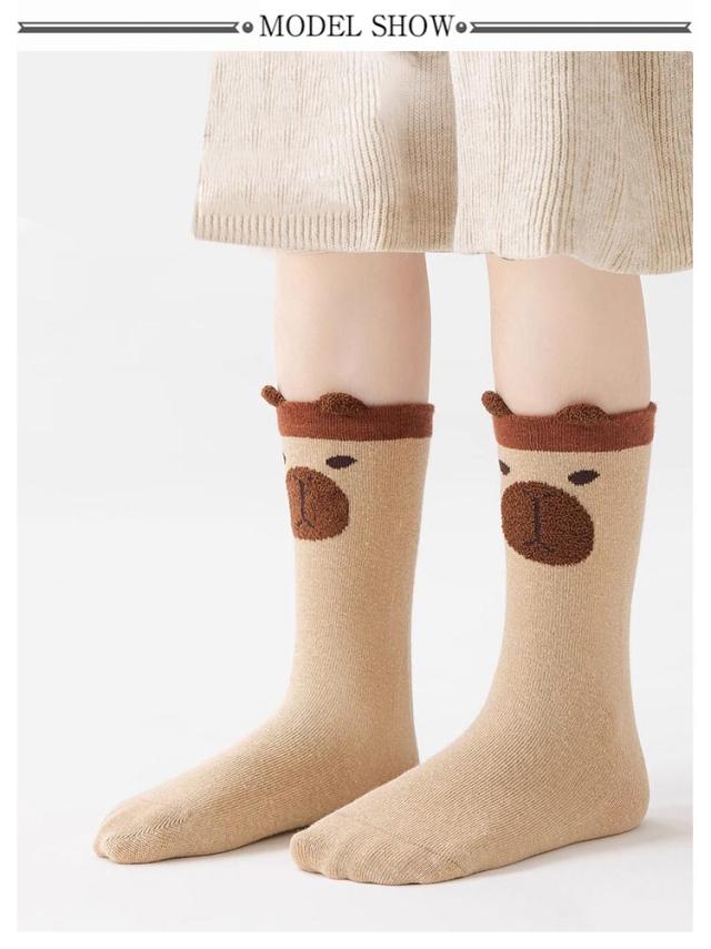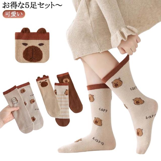 子供 無地 綿 男の子 靴下 子供 可愛い 子供 秋 おしゃれ 靴下キッズ キッズ 春秋 春 靴下 ブラウン カピバラ アニマル 5足セット 動物 シンプル 女の子 かっこいい かわいい 保育園 幼稚園 学校