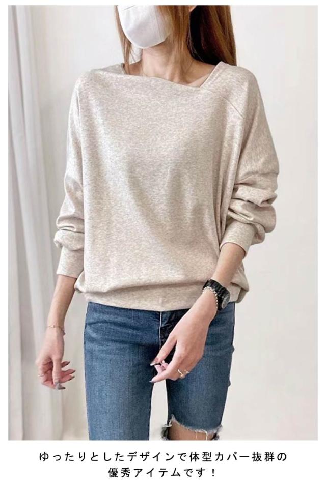 トレーナー レディース アシンメトリーネック 長袖 カットソー 秋 冬 ゆったり トレーナー トップス プルオーバー ドロップショルダー イレギュラーネック アシメネック パーカー tシャツ シンプル 着回し オフィスカジュアル