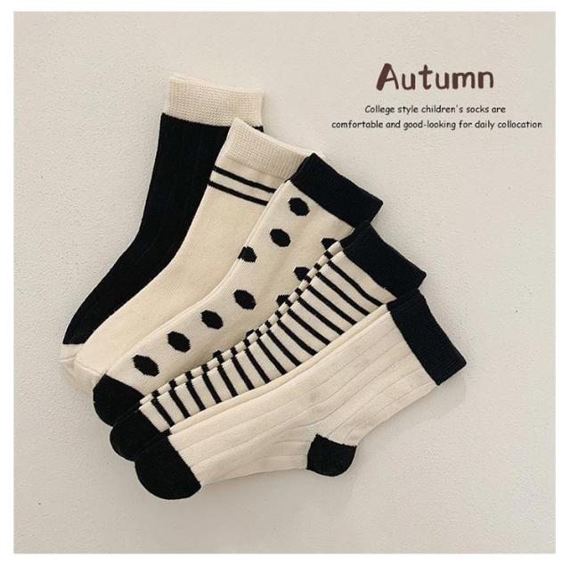 子供服 韓国 靴下 韓国子供服 ライン 白 キッズ 韓国 秋 ドットクルーソックス5足セット ベビー服 韓国 送料無料 ベビー ファッション 男の子 ベビーファッション 黒 ボーダー 春 靴下 ナチュラル 通園 通学 12cm 冬 14cm 16cm 18cm 20cm