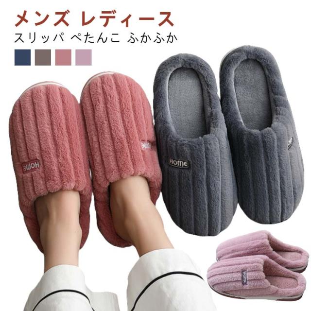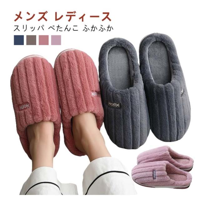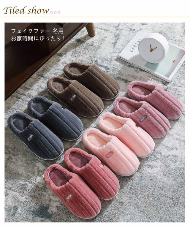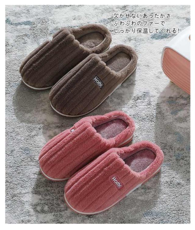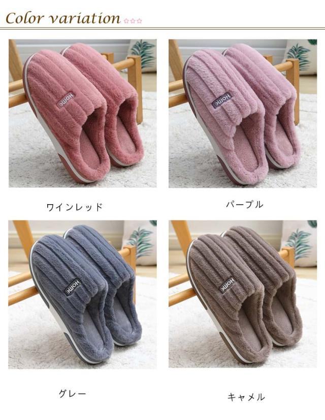 冬用 スリッパ メンズ 滑り止め レディース 暖かい おしゃれ 室内 家 オフィス シンプル 無地 スリッパ 来客 室内履き 洗える ゴム アウトソール ルームシューズ ふわふわ フェイクファー あったか 冷え対策