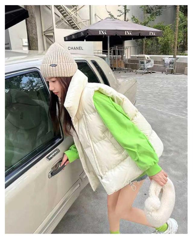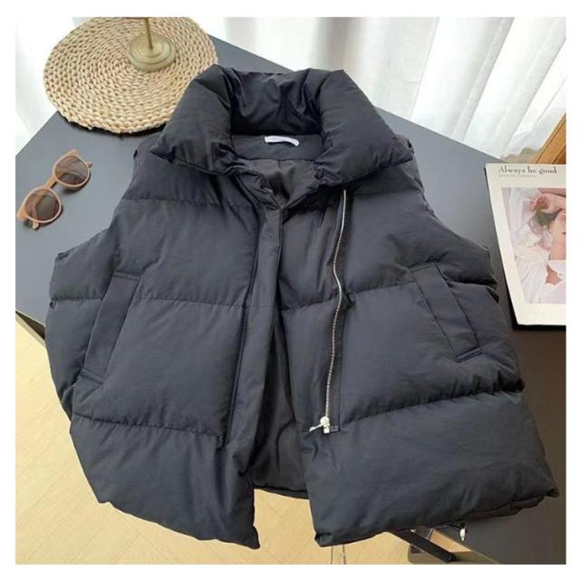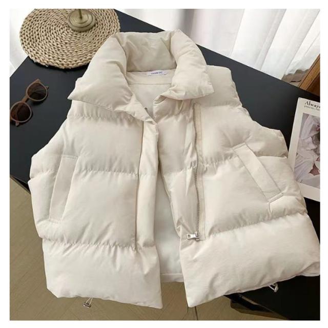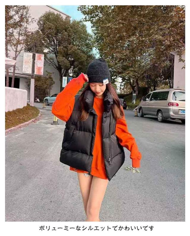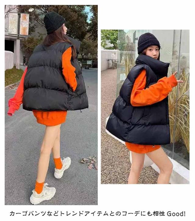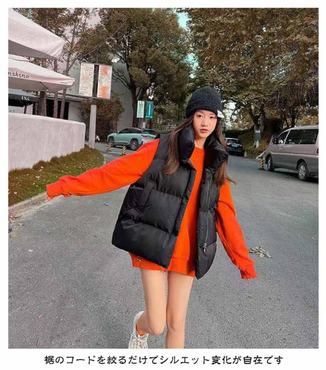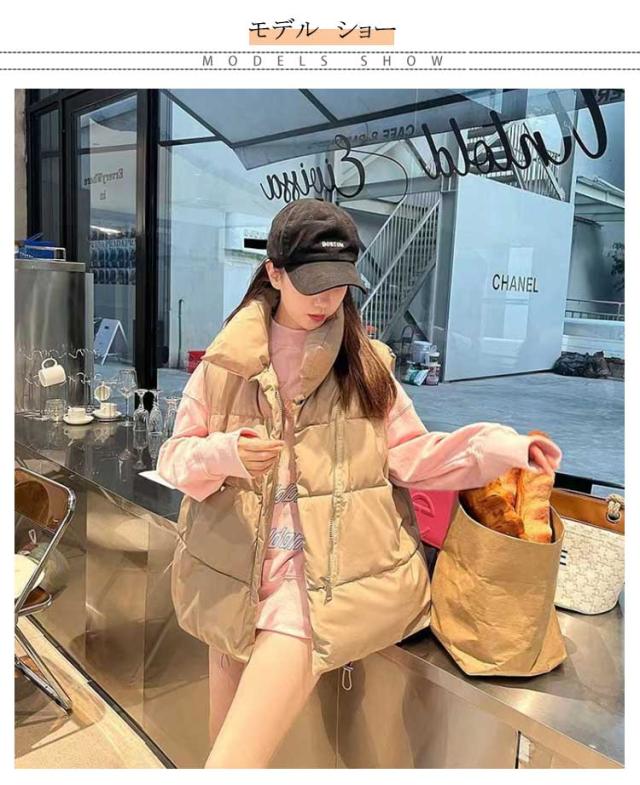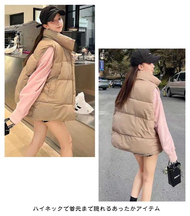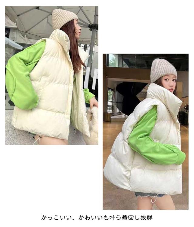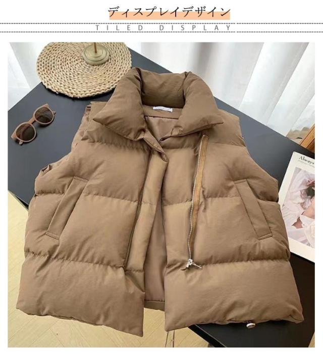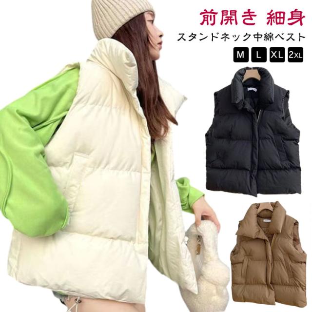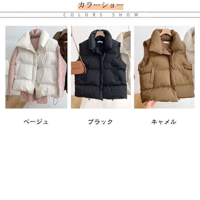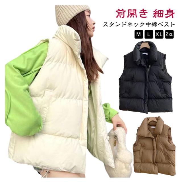 フェイク ダウン アウター フードなし ベスト レディース 中綿ベスト 冬 防寒 かわいい もこもこ ベージュ おしゃれ スタンド 韓国 秋冬 中綿ベスト ダウンベスト ジャケット 白 黒 カジュアル 大きいサイズ 韓国ファッション ストリート