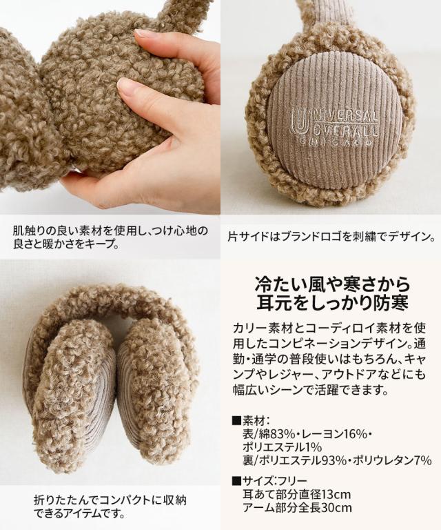 UNIVERSAL OVERALL ユニバーサルオーバーオール イヤーマフ 防寒 レディース かわいい 暖かい 耳当て 大人 冬 イヤマフ ブランド ボア コーデュロイ 暖か あったか おしゃれ もこもこ ふわふわ クリスマス 黒 ブラック ベージュ アイボリー UO z1478