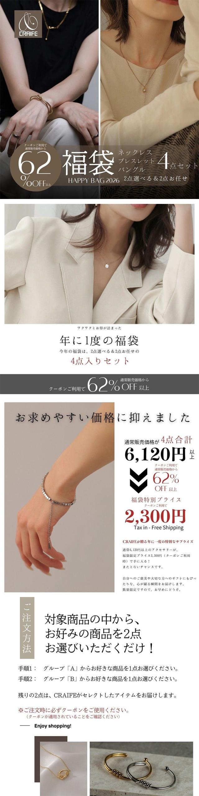 【クーポンご利用で2,300円】 【 福袋 】 2点選べる&2点お任せ ネックレス・ブレスレット・バングル 4点セット シンプル モダン 大人 かわいい ジュエリー ゴールド シルバー 送料無料 プチプライス高見え CRAIFE